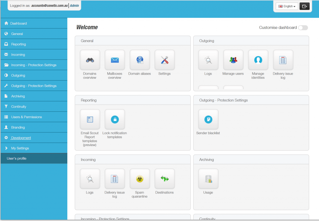 Designed with the end-user in mind, Spam Experts provides a complete easy-to-use control panel. From here users can control their spam filtering setting, search through all emails, and view spam filtering reports..